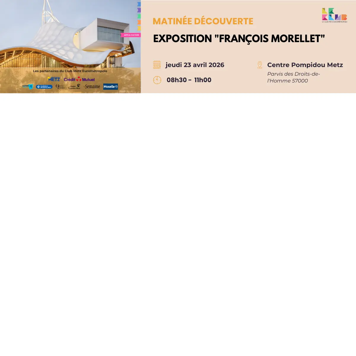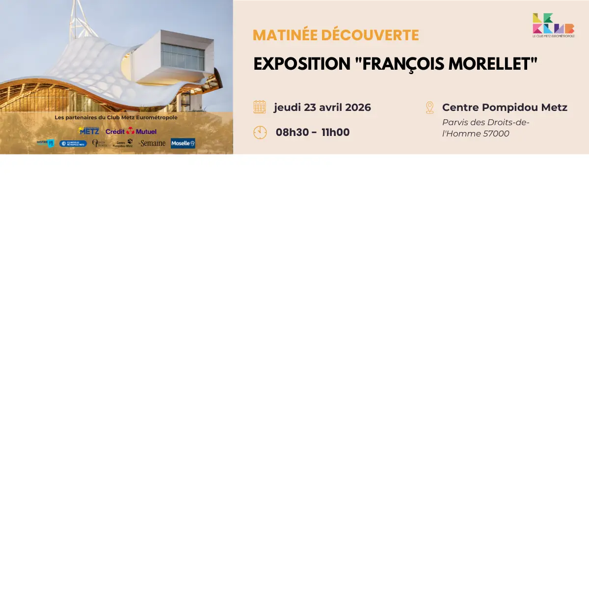 Le Club Metz Eurométropole vous invite à une matinée découverte au Centre Pompidou-Metz à l’occasion de l’exposition consacrée à François Morellet.